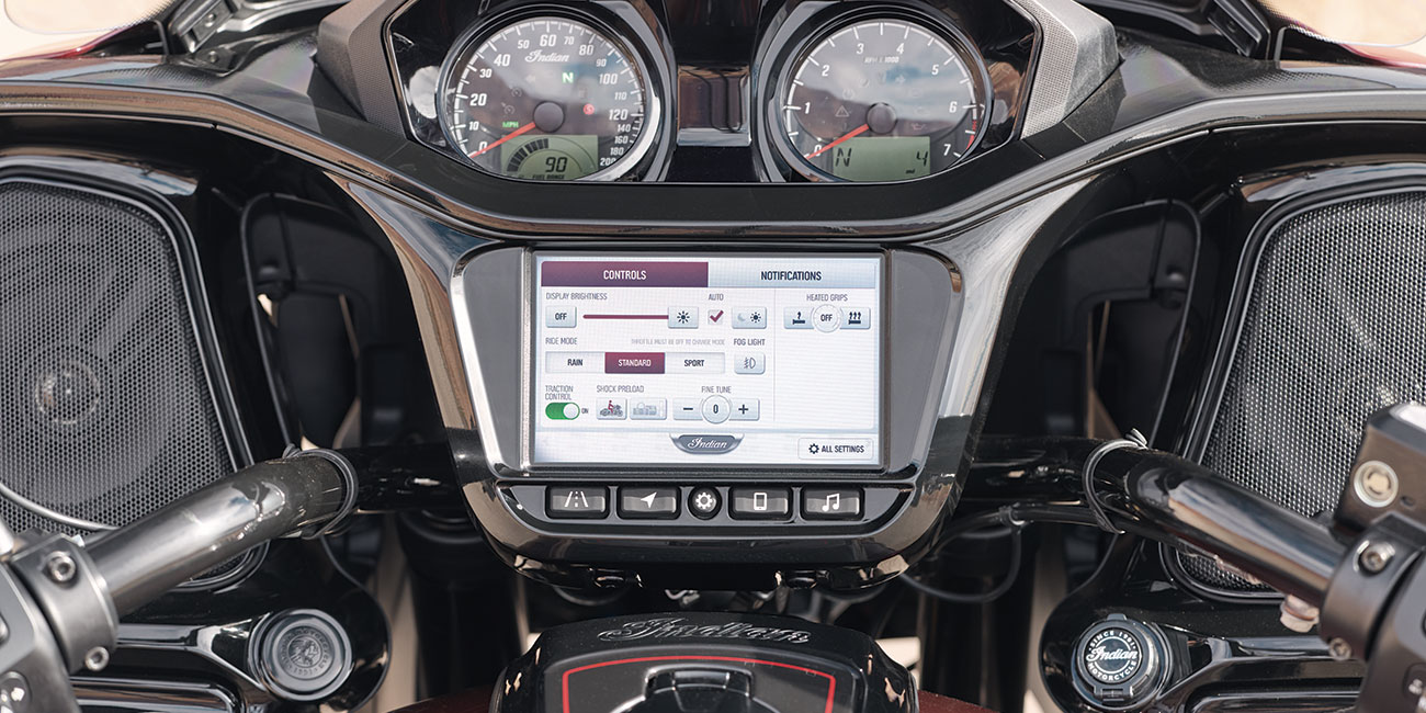 L’Indian Challenger Édition 125e Anniversaire met l’accent sur la performance et la maîtrise. Sa tête de fourche montée sur le chassis, ses finitions noires et son moteur PowerPlus 112 ci à refroidissement liquide sont accompagnés de détails peints à la main et de badges spécifiques du 125e anniversaire.