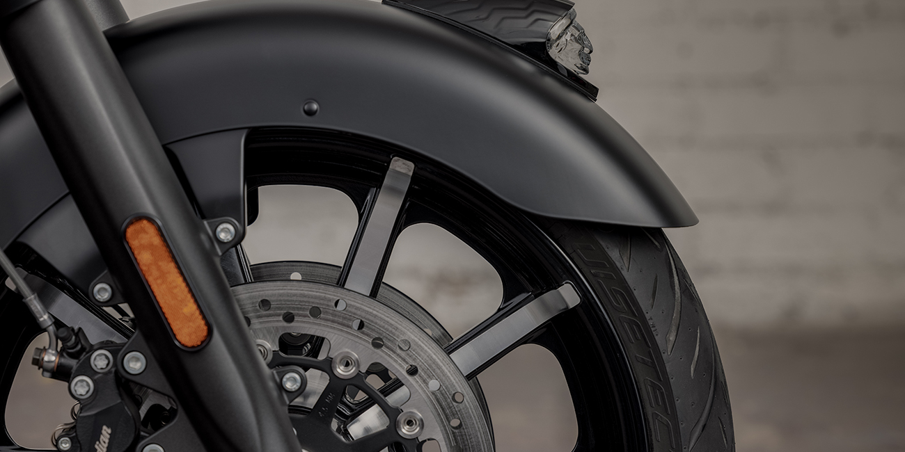 S’inspirant du look des motos customisées, le garde-boue avant avec sa coiffe d’Indien iconique met en valeur la jante à batons de 19 pouces.